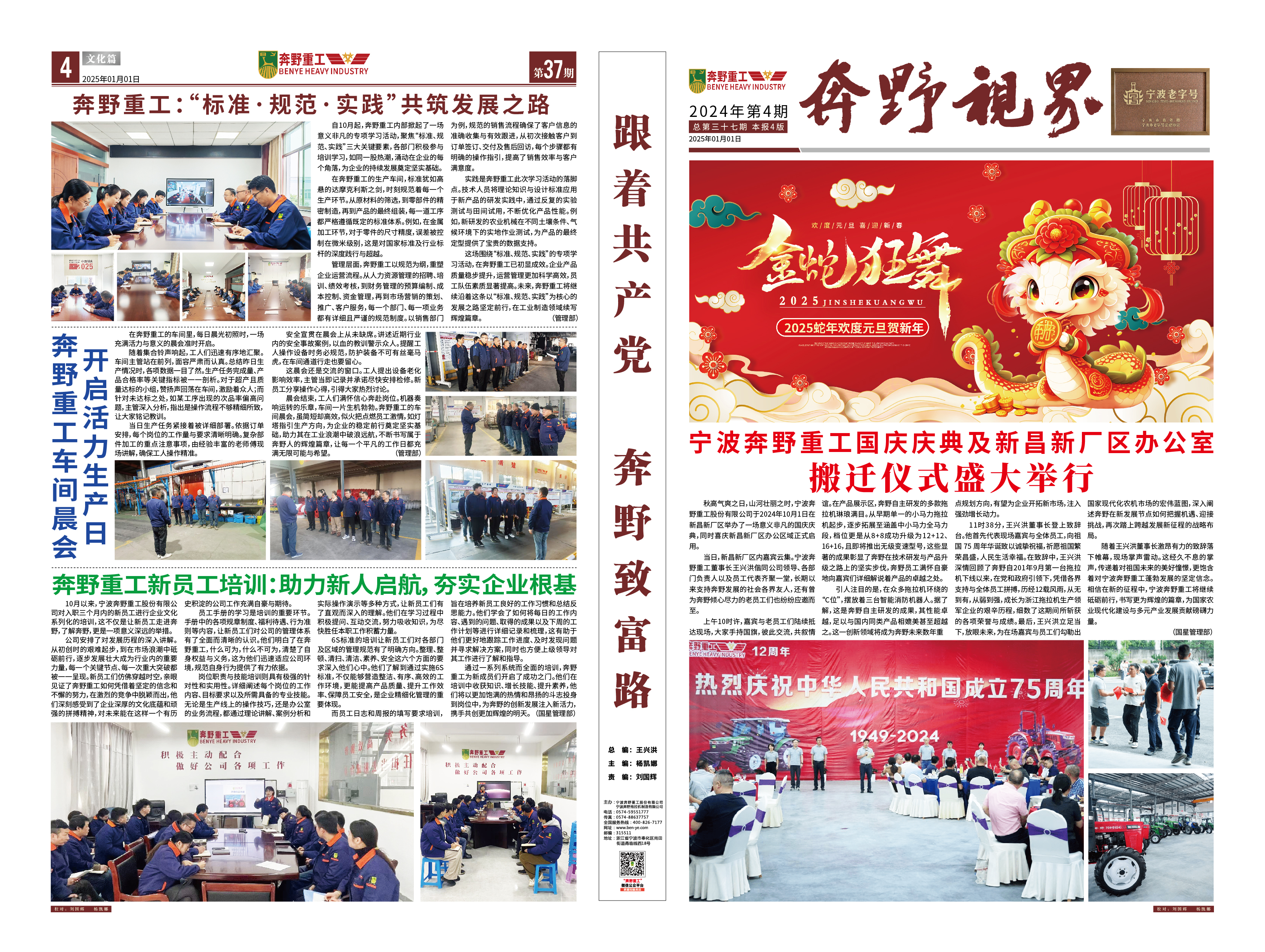 是一家非道路用農(nóng)用拖拉機(jī)整機(jī)及部件設(shè)備研發(fā)、制造、銷售、服務(wù)為一體的涉農(nóng)科研型生產(chǎn)企業(yè),專業(yè)生產(chǎn)寧波型奔野系列拖拉機(jī),是國家高新技術(shù)企業(yè)、工信部專精特新“小巨人”企業(yè)、浙江省知名商號,寧波市級農(nóng)業(yè)龍頭企業(yè)、脫貧攻堅(jiān)-產(chǎn)業(yè)合作樣板企業(yè)、鄉(xiāng)村振興先進(jìn)集體,在寧波、新昌、吉林等地均設(shè)有生產(chǎn)基地,占地150多畝。公司現(xiàn)有技術(shù)骨干30多人,零部件自制化水平達(dá)到30%以上。公司目前擁有發(fā)明專利10余項(xiàng),實(shí)用新型專利、外觀專利、版權(quán)近50項(xiàng),擁有自主的知識產(chǎn)權(quán)保護(hù)品牌。公司所處的農(nóng)業(yè)農(nóng)機(jī)領(lǐng)域是國家重點(diǎn)關(guān)注和保障的、關(guān)乎國計(jì)民生的領(lǐng)域,得到國家和地方政府的大力支持,行業(yè)發(fā)展勢頭良好。